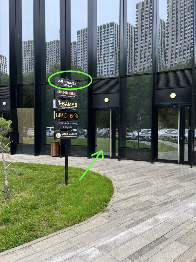 Мы находимся по адресу: г. Москва, ул. Фестивальная, д. 29, подъезд 2. Вход сразу у указателя ЕВАМЕД. Домофон: 1616